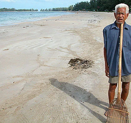 An expanse of 308,000 square miles of water (an area about two times the size of the state of California), with an average depth of just over half a mile, hides a system of submarine valleys and ridges. This watery area, bound by islands and peninsulas, is part of the Indian Ocean known as the Andaman Sea. The sea is dotted with more than 125 islands. One island, Koh Lanta Yai (Koh Lanta), though close to the mainland, is inaccessible except by boat. If arriving after dusk, under the blanket of a dark sky, visitors may find the inky sea and visually silent landscape a bit mysterious, while sounds and scents provide some cues.